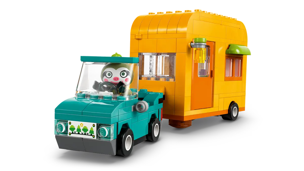 To także świetna gratka dla dzieci, które uwielbiają zestawy z pojazdami. Mogą jeździć ruchomym samochodzikiem i przyczepą kempingową do miasta i rozstawiać stoisko z roślinami. Zestaw zawiera dwie minifigurki — leniwca Leifa i wiewiórki Poppy — oraz wiele kreatywnych akcesoriów. Dzieci mogą udawać, że sadzą nasiona i podlewają je za pomocą konewki i pompy lubmogą odgrywać rolę Poppy kupującej rośliny w zamian za Bellsy.