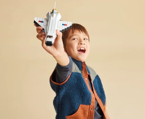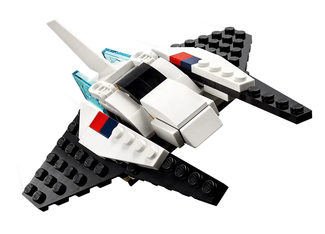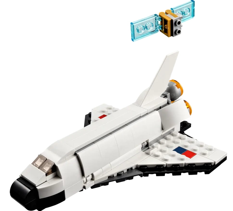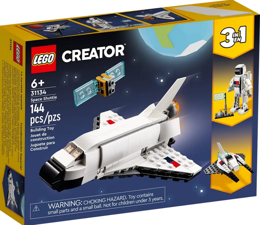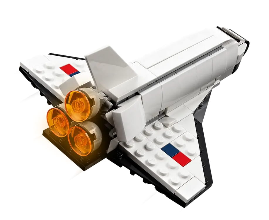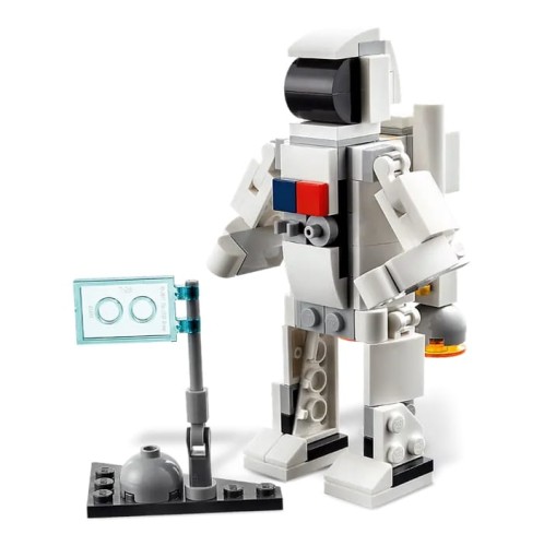W tym zestawie LEGO Creator 3 w 1 znajdują się trzy różne modele. Można więc stworzyć prom kosmiczny, a później przebudować go w ruchomą figurkę astronauty z plecakiem odrzutowym i flagą do zatknięcia na planecie albo też zbudować imponujący model statku kosmicznego.