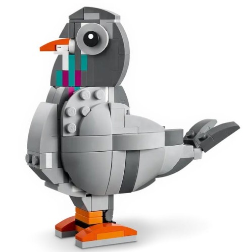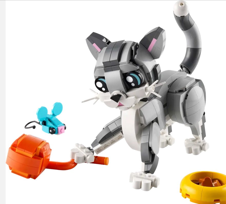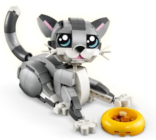 Dzieci mogą zbudować trzy różne zwierzątka z tych samych klocków: ruchomego kota, który może siedzieć, stać i skakać, ruchomego psa z kością oraz gołębia z okruchami chleba. Wszystkie trzy sceny sprawiają, że jest to świetny prezent LEGO dla dzieci.
