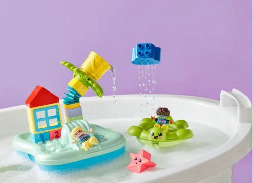 Szukasz zabawki do kąpieli dla maluchów w wieku od dwóch lat? Dzięki LEGO Town Park wodny (10989) kąpiel zmienia się w pełną nauki zabawę, w czasie której dzieci odkrywają kolorowy park wodny. Ten zestaw nie tylko wprowadza maluchy w świat liczb i rozwija umiejętność nalewania, ale jest też łatwy do wyczyszczenia i przechowywania. Interaktywny zestaw do kreatywnej zabawy Ta zabawka edukacyjna zawiera elastyczną palmę, której wysokość dzieci mogą zwiększać, dodając do niej klocki z cyframi.