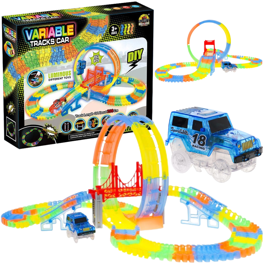MAGICZNY TOR SAMOCHODOWY ŚWIECĄCY AUTKO ZE ŚWIATŁEM 3M 157EL