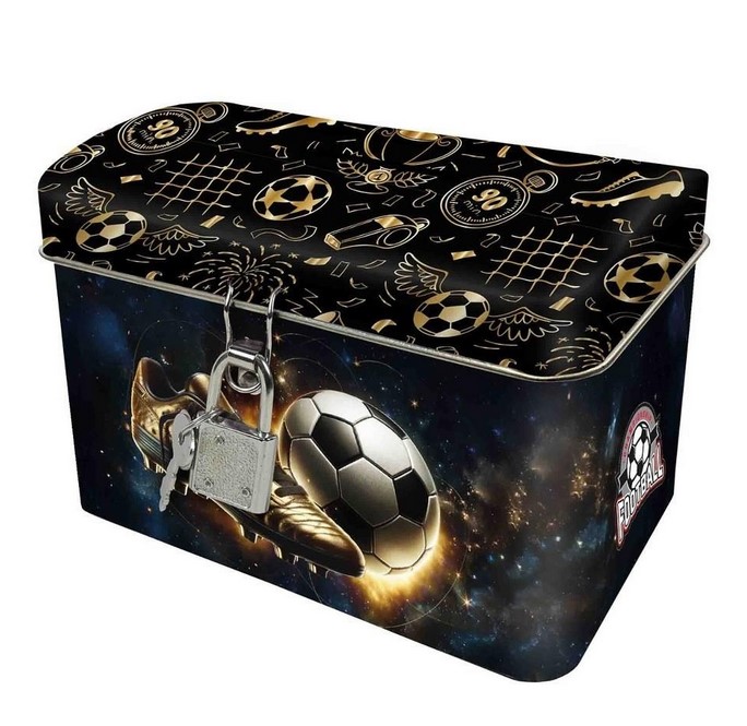 METALOWA SKARBONKA Z KŁÓDKĄ – KUFEREK PIŁKA