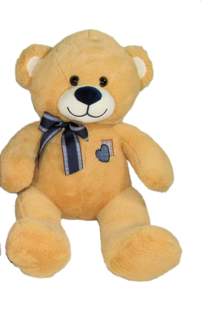 Maskotka przedstawia uroczego misia z kokardką i haftowanym sercem.