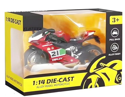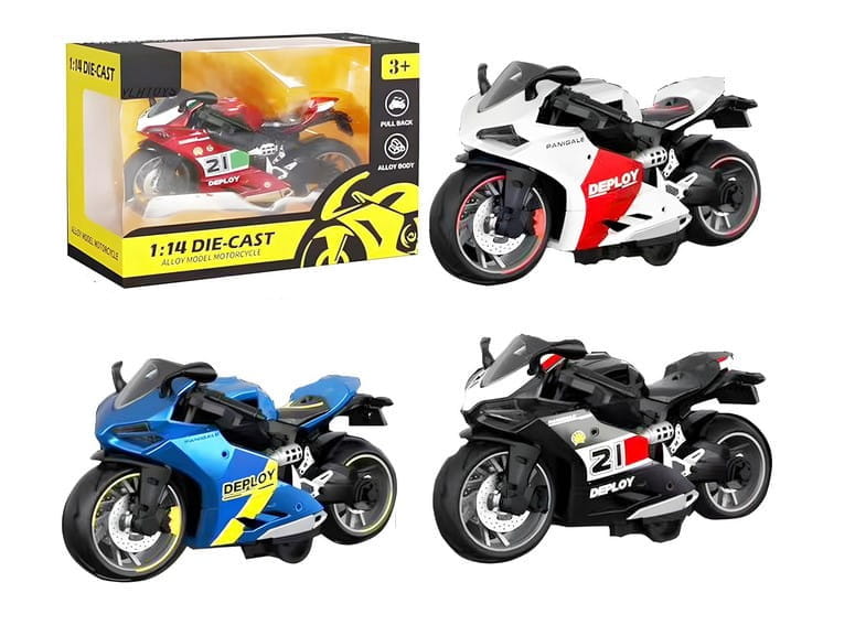 Die-Cast Alloy Motorcycle Toy to realistyczny model motocykla w skali 1:14, wykonany z wysokiej jakości stopu metalu. Dzięki precyzyjnym detalom i solidnej konstrukcji, zabawka doskonale nadaje się zarówno dla młodych entuzjastów motoryzacji, jak i kolekcjonerów