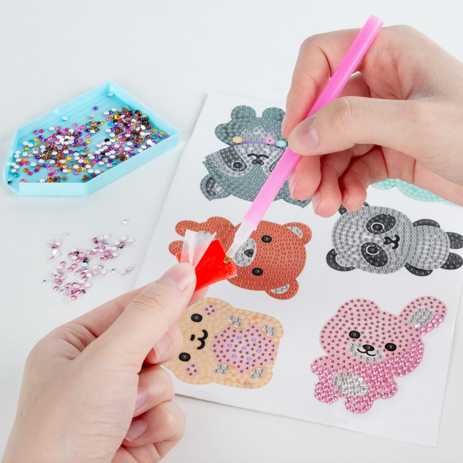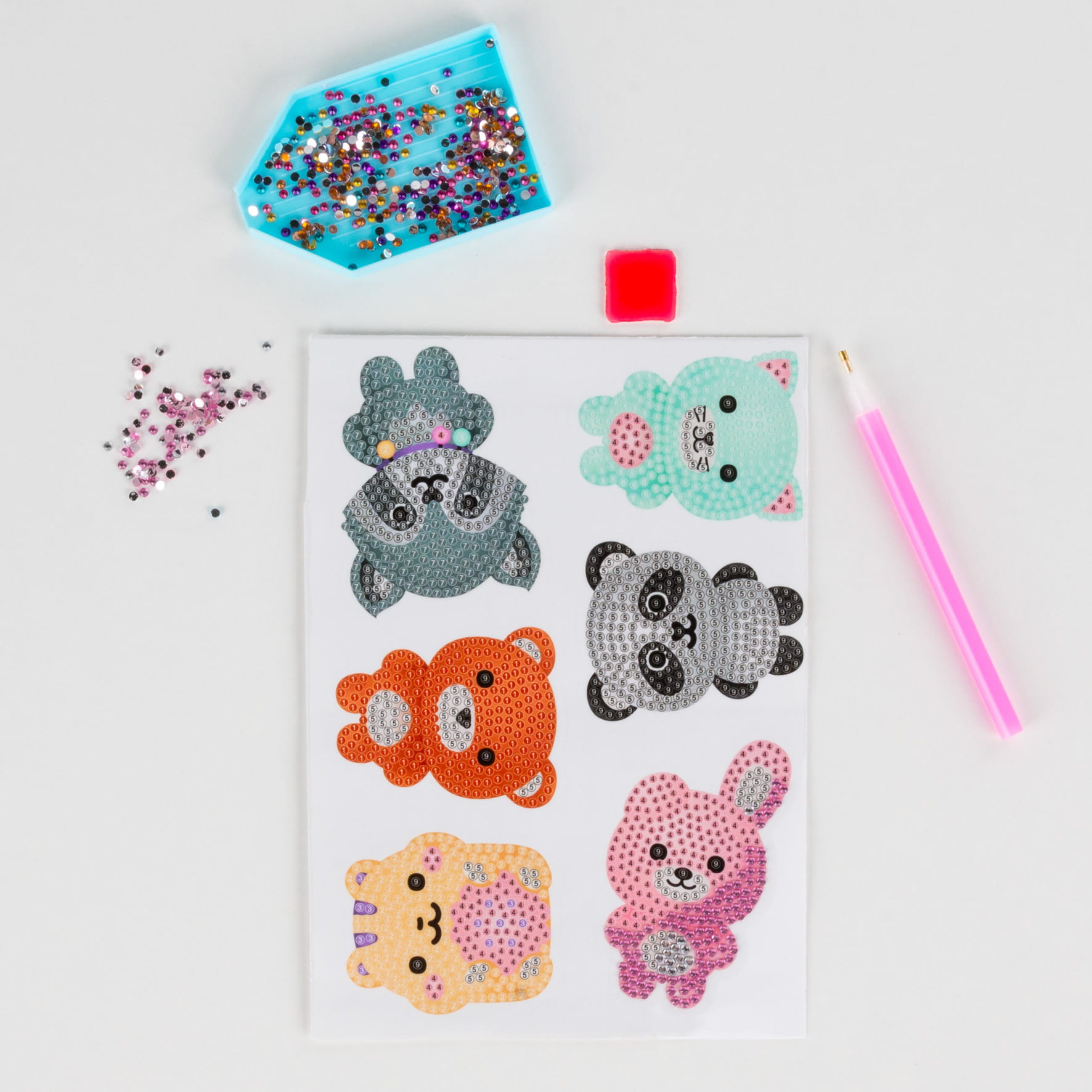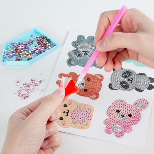 W skład wchodzi 6 urokliwych nalepek z wizerunkiem kotka, pandy, chomika, króliczka, szopa i misia.