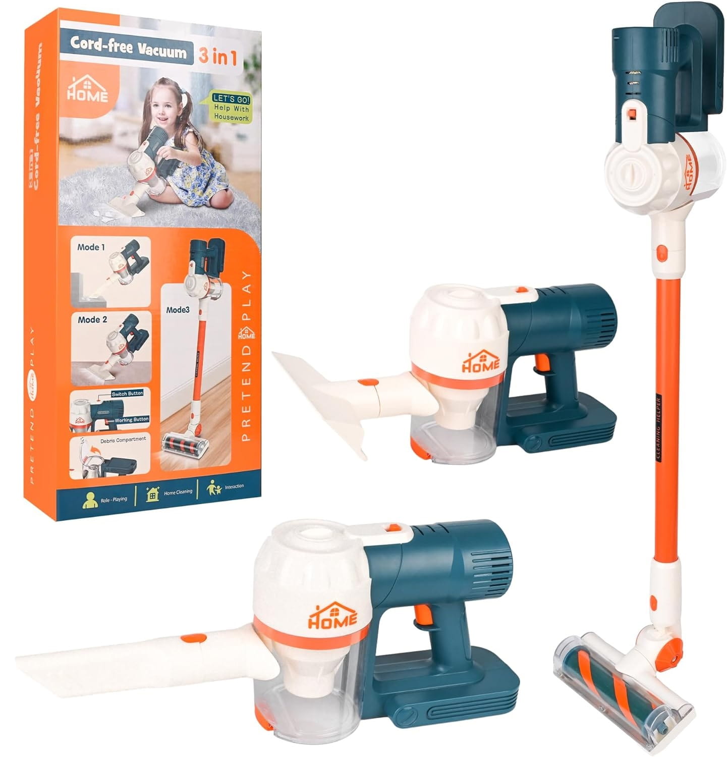 ✔️Jego konstrukcja 3 w 1 oznacza, że dzieci mogą używać go jako odkurzacza ręcznego, ręcznego lub schodowego. W zestawie znajdują się końcówki.