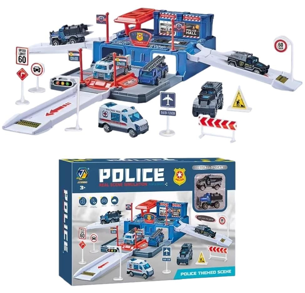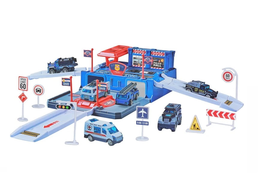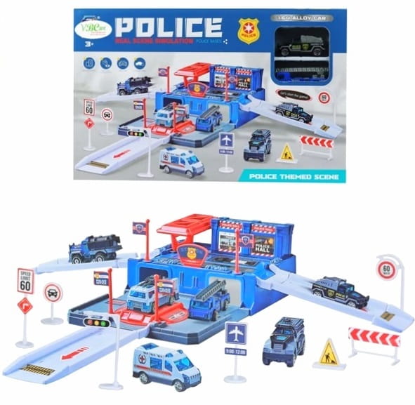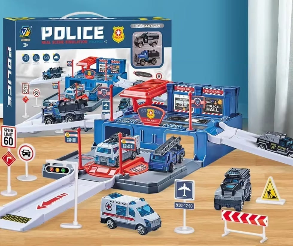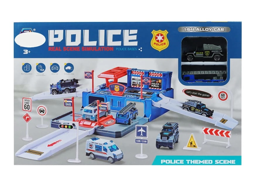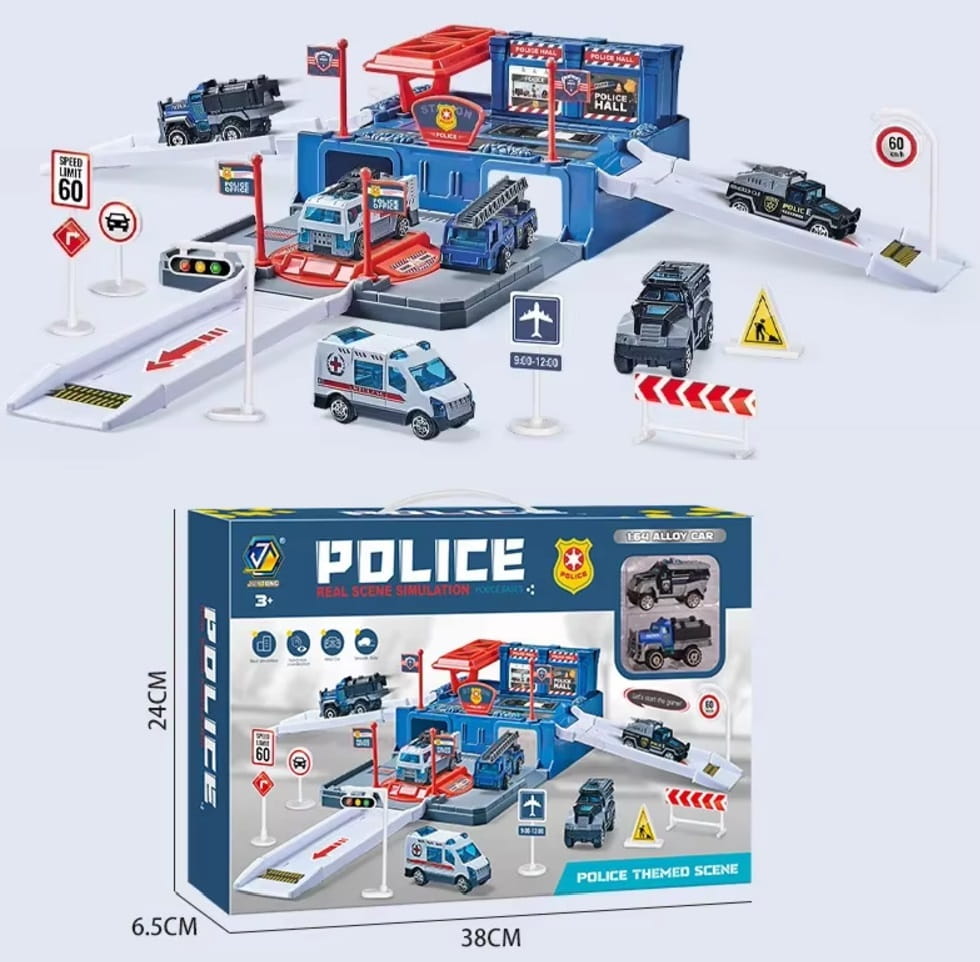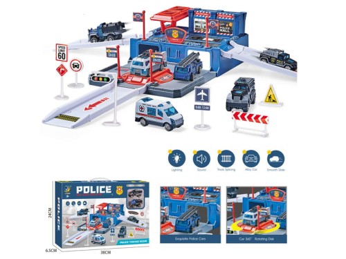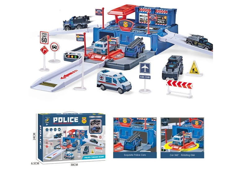PARKING GARAŻ POLICJA AUTKA METALOWE SAMOCHODY + NAKLEJKI DO ZDOBIENIA