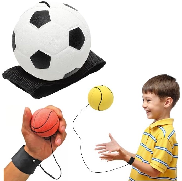 ✔️Piłkę można rzucać przed siebie, odbijać od ściany lub podłoża - dzięki gumce piłeczka nigdzie nie ucieknie!