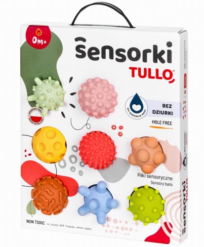 Miękkie, bezpieczne i zaprojektowane z myślą o rozwoju dziecka - Sensorki Tullo® to wyjątkowe piłeczki, które pobudzają zmysły, rozwijają koordynację oraz wspierają prawidłowy rozwój motoryczny malucha. Każda piłeczka ma inną fakturę i kolor, co dostarcza bogatych wrażeń czuciowych oraz zachęca do eksploracji i aktywności.