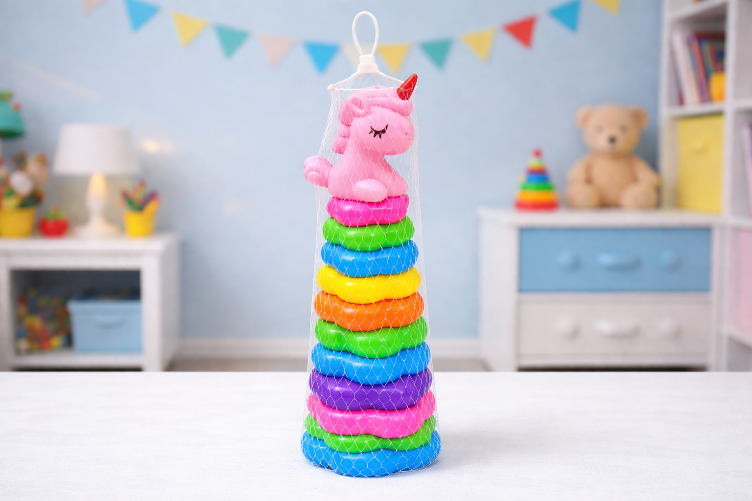 PIRAMIDKA 12 EL SORTER SENSORYCZNA UKŁADANKA EDUKACYJNA JEDNOROŻEC KONIK