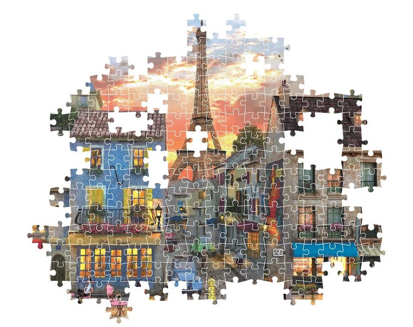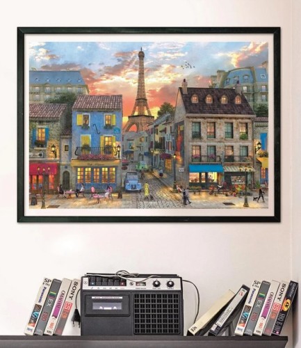 Układanka przedstawiająca klimatyczną scenerię paryskich ulic, pełnych eleganckiej architektury, nastrojowych kamienic i miejskiego uroku charakterystycznego dla Paryża. Starannie oddane detale fasad, światło odbijające się w oknach oraz subtelna kolorystyka tworzą obraz, który przyciąga wzrok i zachęca do uważnego odkrywania każdego fragmentu ilustracji podczas układania.
