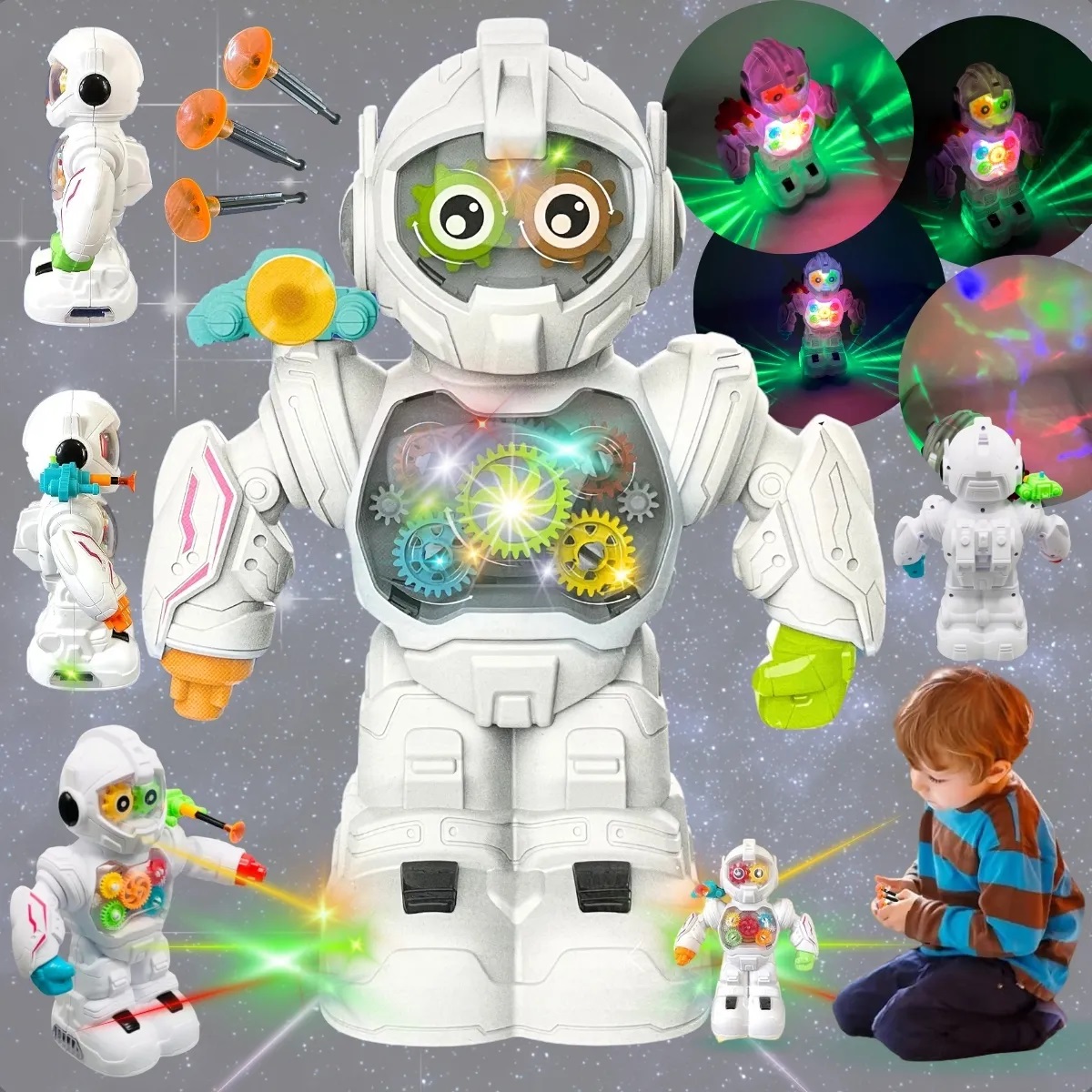 ✨Kolorowe diody LED wbudowane w oczy i mechanizmy sprawiają, że robot przyciąga uwagę.