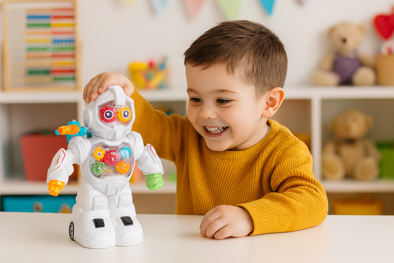 ✨Ruchome trybiki – widoczne mechanizmy robota kręcą się podczas działania, rozwijając ciekawość dziecka.