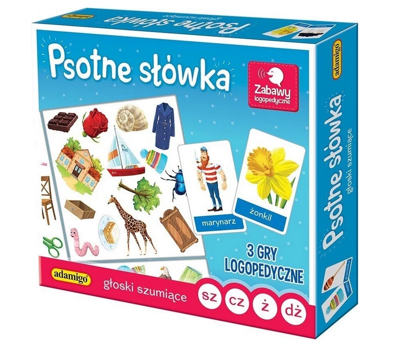 TRZY GRY LOGOPEDYCZNE PSOTNE SŁÓWKA GŁOSKI SZUMIĄCE 7295 ADAMIGO