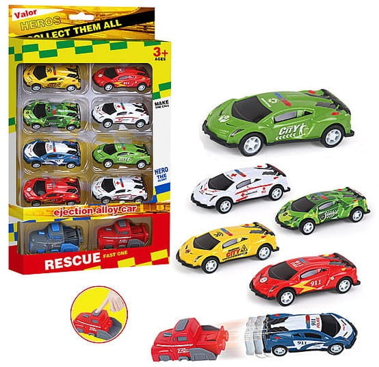 ✔️W zestawie: dwie wyrzutnie, która wyrzucają samochodziki + 8 kolorowych, sportowych autek.