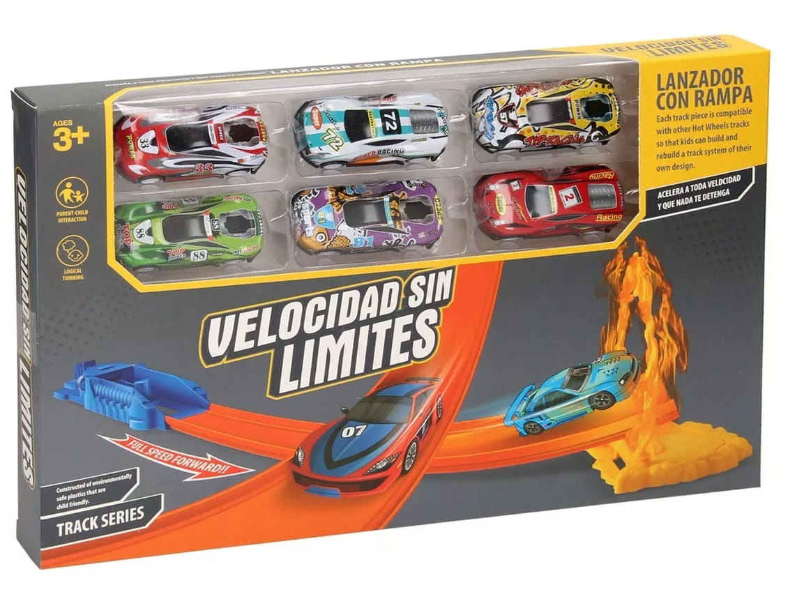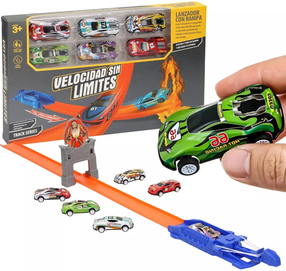 ⭐W opakowaniu: wyrzutnia, która wyrzuca samochodzik oraz 6 metalowych autek.