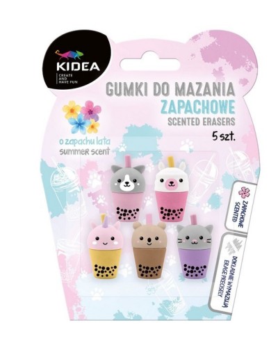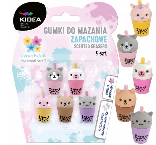 Kolorowy zestaw 5 zapachowych gumek do mazania marki Kidea (model GMZS5KA) to praktyczne i jednocześnie zabawne akcesorium szkolne. Idealne do poprawiania błędów w zeszytach oraz dodania odrobiny radości podczas nauki.