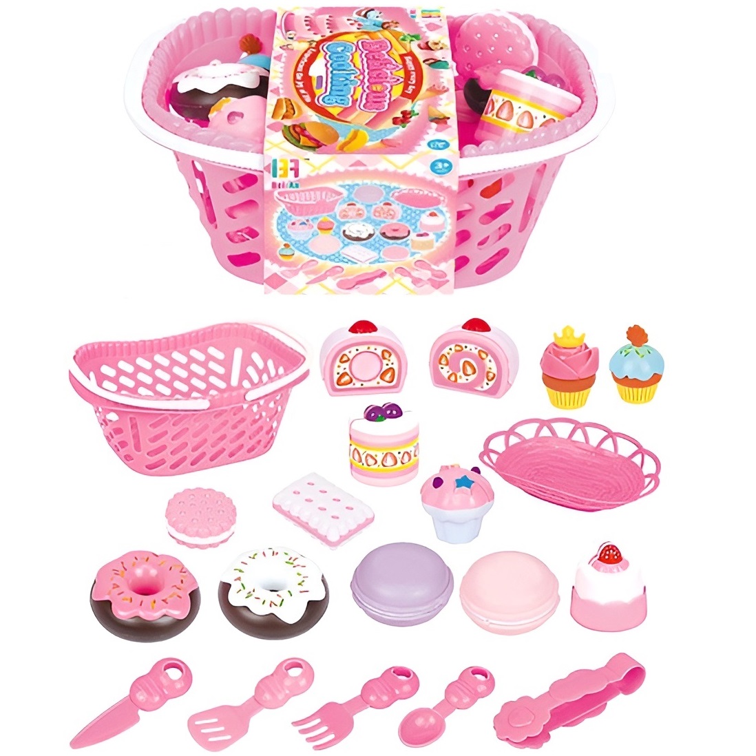 ✳️KOSZYK PEŁEN KOLOROWYCH PRODUKTÓW - Idealny zestaw do zabaw w dom, restaurację czy kuchnię.