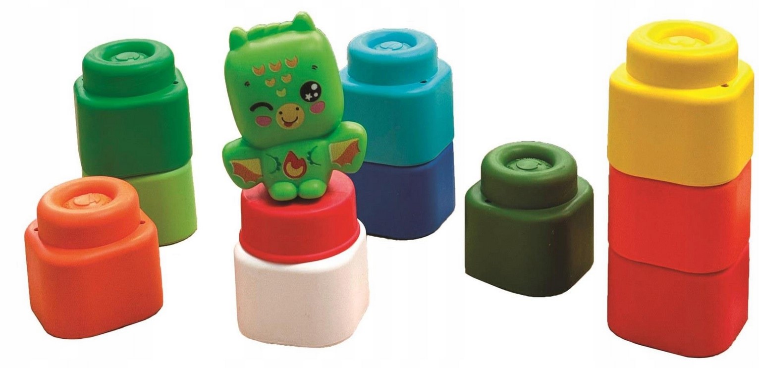 W komplecie znajduje się figurka sympatycznego smoka, która urozmaica zabawę i zachęca do tworzenia pierwszych wież i konstrukcji.