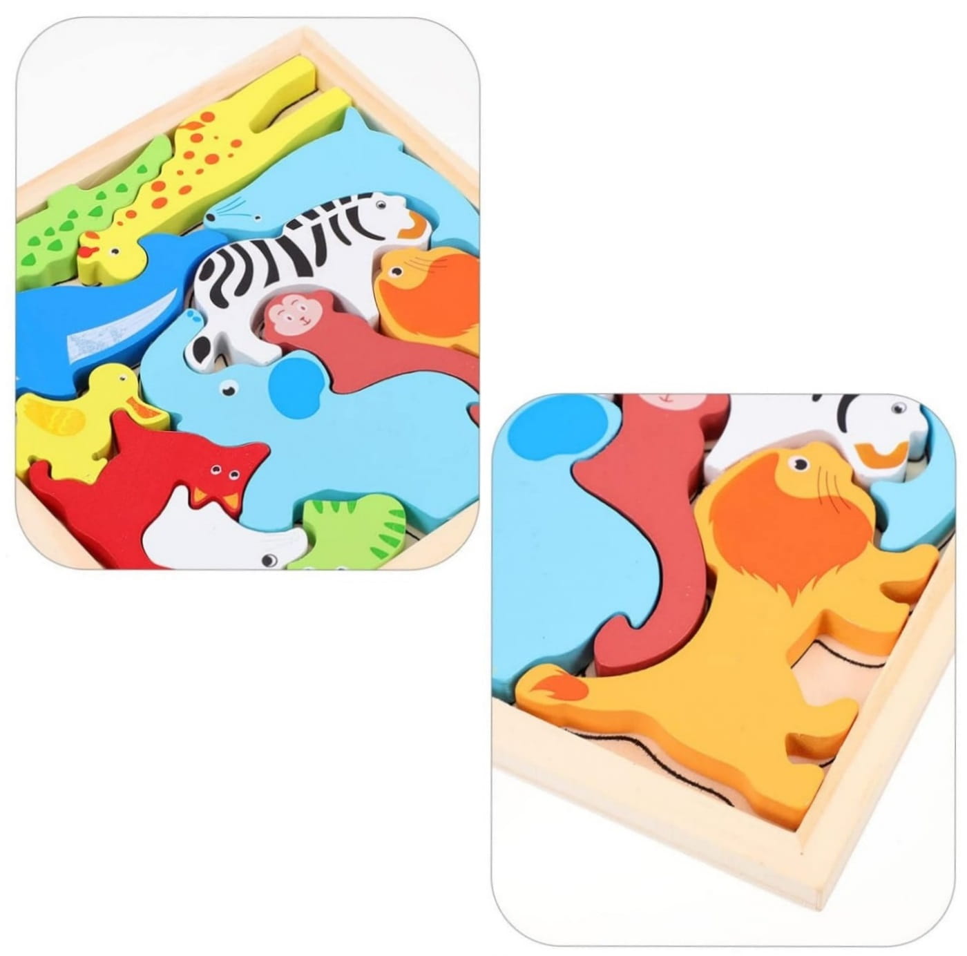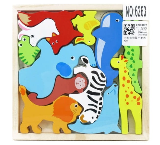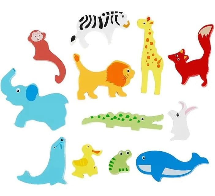 KLOCKI ZWIERZĄTKA DREWNIANE PUZZLE UKŁADANKA ZOO