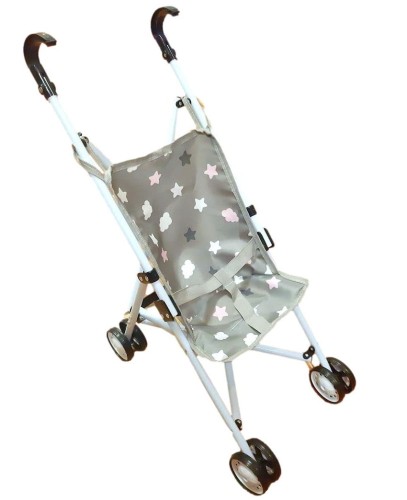 Składany wózek dla lalek w modnym szarym kolorze w gwiazdki !
